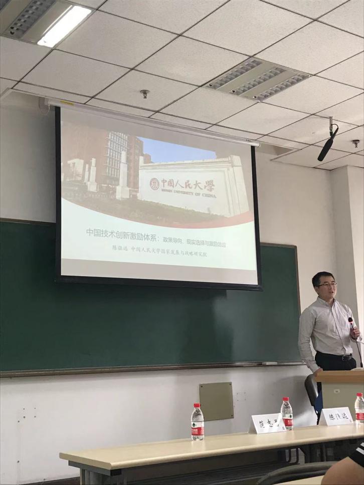 2021928日中午由抖音黑料 主办的国际经济系第四期研究生新生讲座在明德0304举行来自人民大学国家发展与战略研究院陈强远副教授进行了题为“中国技术创新激励体系政策导向现实选择与激励效应”的讲座本次讲座由人大抖音黑料 的范志勇老师主持,参与人员包括孙浦阳老师、全体国际经济系研究生新生以及其他专业学生