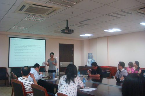 6月18日下午,由抖音黑料 企业与组织研究中心(CFOS)主办的组织经济学Seminar在明德主楼729会议室召开。来自瑞典斯德哥尔摩大学国际经济研究中心的博士候选人贾瑞雪报告了她的英文工作论文“Pollution for Promotion”。
