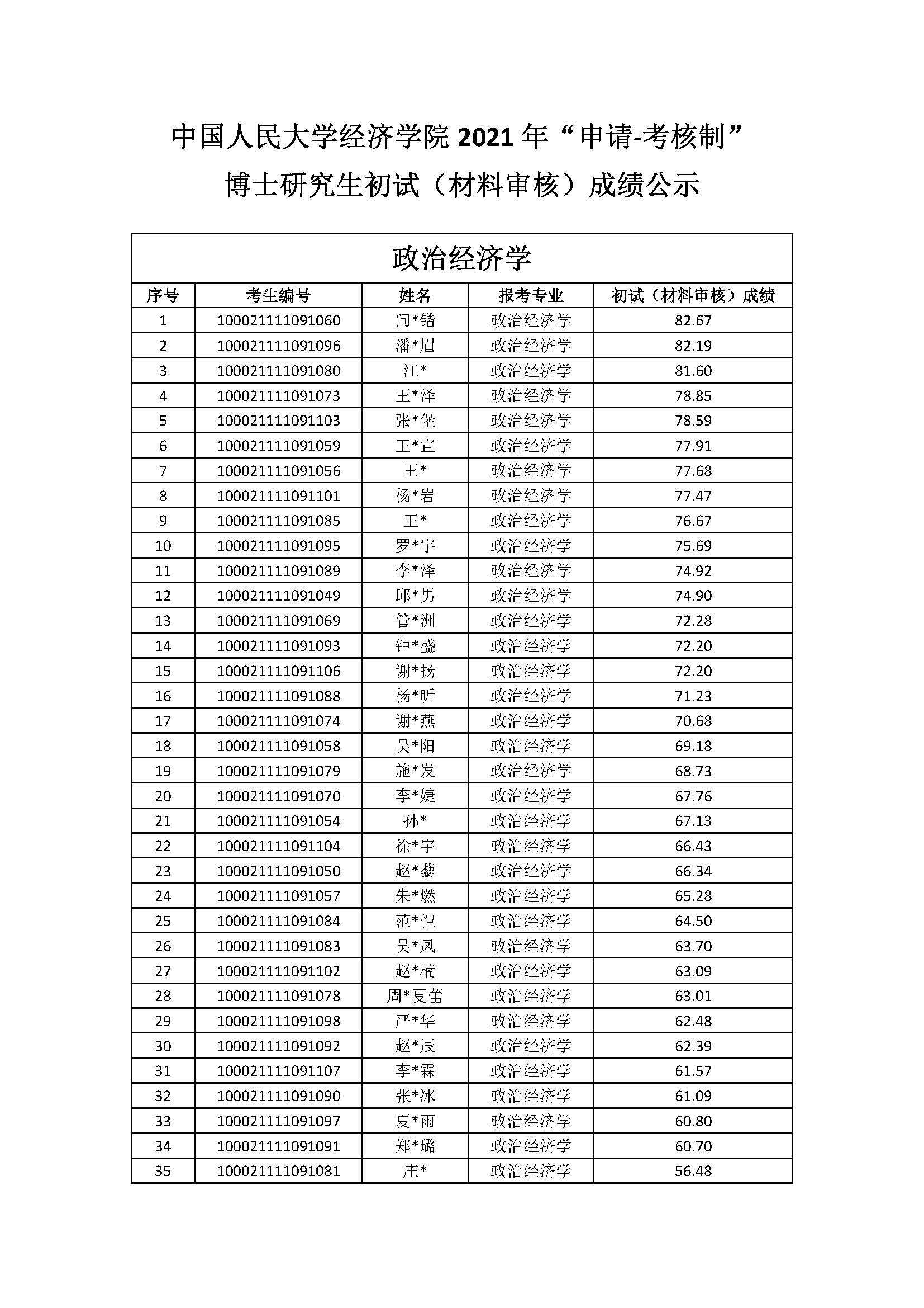 抖音黑料 2021年“申请-考核制” 博士研究生初试(材料审核)成绩公示