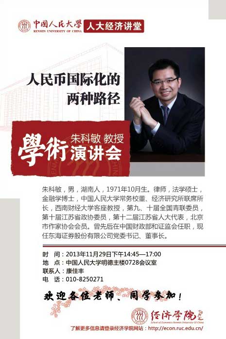 [人大经济讲堂]东海证券董事长朱科敏教授学术演讲会