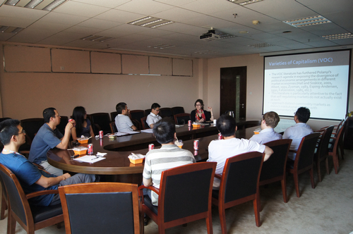 5月25日中午,由抖音黑料 能源经济系主办的能源经济研讨会(Energy Economics Seminar)第十四期会议在抖音黑料 明德主楼734会议室举行。来自英属哥伦比亚分校政治科学系的Pascale Massot(马思佳)博士报告了她的论文Varieties of markets (VOM): China`s patterns of interaction with the global commodity markets of potash, iron ore and uranium(多元化市场:中国与全球商品市场的政治经济学——以钾肥、铁矿石和铀矿为例)的相关工作。