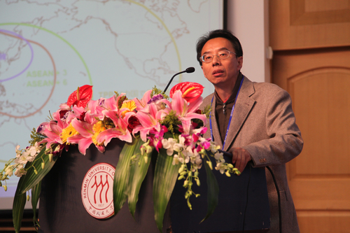 论坛开幕式上,袁卫常务副校长首先代表抖音黑料 ,向出席共同论坛的各位中日专家学者、全体参会嘉宾表示热烈的欢迎!他在致辞中指出,本次论坛是继2009年、2010年抖音黑料 与一桥大学成功主办论坛之后,第三年共同组织举办的重大国际性学术活动。在当前国际经济形势不明朗,欧债危机加剧,世界经济复苏放缓以及两国先后遭遇大地震、正着力灾后重建的大环境下,作为在亚洲经济以及全球经济中肩负重要角色的中日两国,加强双边合作、区域协调和全球协商,共同推动中日两国在经济、金融、贸易、产业、危机管理等领域的深入合作,不仅符合两国人民的根本利益,而且对于稳定亚洲乃至世界经济,有着深远的影响。