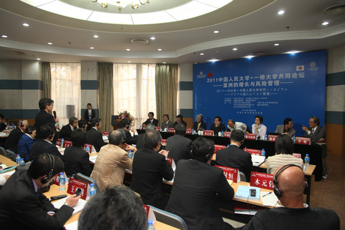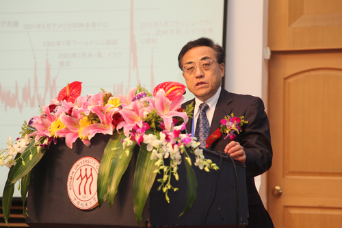 清水启典教授发表了题为“亚洲的成长与危机管理”的演讲。他就世界经济的现状和风险、世界规模的道德风险以及中国的风险展开了分析。董克用教授发表了题为“亚洲的自然灾害风险防范与经济增长”的演讲,他围绕亚洲的自然灾害风险:致灾因子与脆弱性分析,自然灾害风险与经济增长的的互动关系,风险全球扩散性与亚洲经济的增长三个方面进行了阐述。杉浦哲郎先生发表了题为“大地震后的日本经济再生”的演讲,就大地震对日本经济的影响、大地震后的正确政策应对、全球化的危机进行了论述。王和先生发表了题为“中国巨灾保险制度建设的探讨”的演讲,就我国巨灾风险形势不容乐观、我国巨灾风险管理体制的反思、我国巨灾风险管理的新架构、建立我国巨灾保险制度的建议展开分析。渡边康平先生发表了题为“全球化的亚洲和企业危机管理”的演讲,阐述了伊藤忠商社的中国事业以及作为全球企业伊藤忠的风险管理。顾海兵教授发表了题为“关于灾害的经济学思考”的演讲,就灾害的本质、关于灾害的预防与治理、关于农业灾害与丰产、丰收,关于核电站的存与废,以及关于中国的人口死亡与安乐死等五个方面进行了阐述和探讨。橘川武郎教授发表了题为“核电厂事故和日本的危机管理”演讲,介绍了日本当前的核电事故与危机,并提出了2030年电力结构的设想与中长期的核电改革建议。