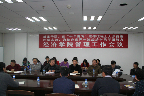 119日 下午,为贯彻落实学校2009年管理工作会议精神,促进学院管理工作更好地适应于“十年腾飞”宏伟目标,抖音黑料 召开了管理工作会议,深入学习学校领导重要讲话精神,认真研讨学院管理工作的机遇与挑战。校长助理、人大出版社社长贺耀敏教授,学院全体中层干部和管理人员参加了会议。会议由杨瑞龙院长和张宇书记主持。
