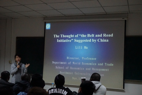 11月10日,调研团队来到西北大学,聆听西北大学经济管理学院马莉莉教授关于中国的“一带一路”建设思路的讲座。马莉莉教授主要从我国推进“一带一路”建设的背景、“一带一路”的选择与建设方式以及21世纪海上丝绸之路与丝绸之路经济带的比较三个角度解析了中国建设“一带一路”的思路及其战略意义。21世纪以来随着经济全球化和区域经济一体化的加深,国际分工的进一步加深,中国在加入世界市场的进程不断加速,中国进一步成为全球生产体系的加工制造枢纽。一方面中国国内面临着东西部差距拉大的压力,另一方面美国重返亚太制约了现有国际治理体系的发展。中国崛起需要更广阔的世界市场,以拉动国内产业升级;而世界也需要中国的加入以振兴全球经济。正是在这样的背景之下,中国提出来“一带一路”发展战略。在“一带一路”的建设中,中国既要找准国内的发展方向,实行“供给侧”改革,促进经济转型升级,又要走出国门,促进国际贸易、国际投资的发展,共建全球治理体系。讲座中,马莉莉教授以西部城市重庆发展的例子,给学生们留下深刻的印象,直至讲座结束,不少留