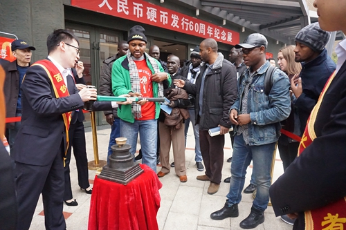 在大唐西市集团,调研团队还参加了人民币硬币发行60周年纪念展活动,了解了中国硬币的发行历史,学习了硬币的铸造技术和关键步骤,并亲自动手尝试铸币。