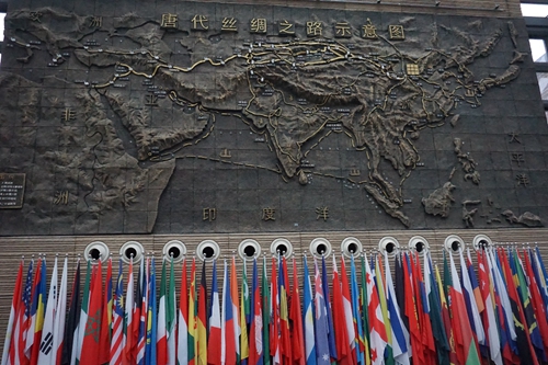 11月9日上午,调研团队前往大唐西市集团。留学生们首先参观了大唐西市博物馆,了解到作为古“丝绸之路”的起点,西安的文明与繁荣是如何通过丝绸之路传播到了遥远的西方。在大唐西市博物馆,许多留学生注意到由多国国旗象征着的“丝绸之路国际总商会”,在这里见到母国国旗,学生们倍感亲切,感慨自由贸易带来的文化繁荣与交往便利,许多来自非国际总商会成员国的留学生,更是深刻地感受到“一带一路”战略下的发展机遇。
