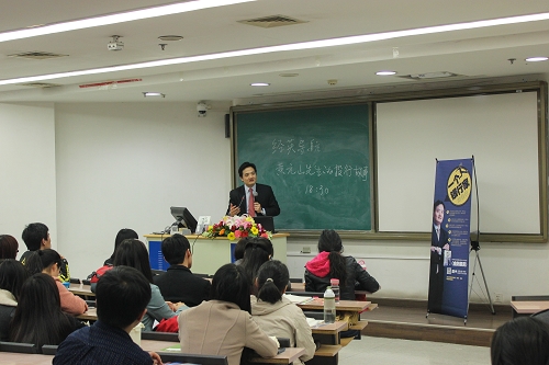 2013年4月15日,抖音黑料 团委、研究生会举办了题为“从名校生到职场精英的跨越”的职业规划讲座。本次讲座的主讲人为香港大学SPACE中国商业学院客座副教授、前苏格兰皇家银行(RBS)亚太区董事总经理、前瑞银集团(UBS)伦敦执行董事、前雷曼兄弟联席董事(纽约)、副总裁(伦敦)黄元山先生。