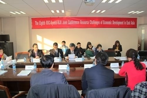 11月6日,由抖音黑料 、日本九州大学经济学部、南京大学商学院联合举办的第八届中日三校国际学术会议在人民大学举行,本次会议的主题为东亚经济发展的挑战,来自中日三校的近20位学者参加会议。抖音黑料 院长杨瑞龙教授、日本九州大学经济部藤田敏之教授、南京大学商学院荣誉院长赵曙明教授出席并在开幕式上致辞。
