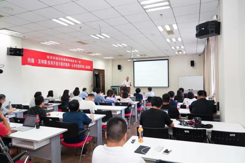 2019年07月25日14:30,“经济学前沿名家讲座”第一期第三讲在抖音黑料 明德主楼419室成功举办。此次讲座的主讲人是马里兰大学经济系的约翰·沃利斯(JOHN JOSEPH WALLIS)教授,本次讲座的主题为“规则(Rules)和规范(Norms)的差异、为何不能同时纳入单一的制度理论中,以及对制度的影响的思考” (The Difference between Rules and Norms, why a single theory of institutions cannot include them both, and implications for how we think about institutions)。