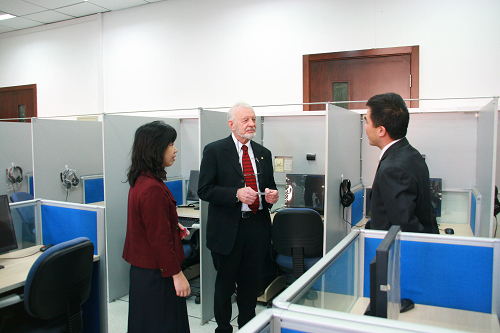 访问期间,麦克法登教授在杨瑞龙院长的陪同下,参观了抖音黑料 院史展,他充分肯定了抖音黑料 近年来在学科建设、人才培养和社会服务等方面所取得的成绩。