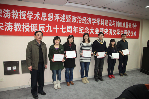 王群副秘书长对宋涛教授的表示了深切的怀念,并认为应为宋涛教授精神的传承创建载体,建议以宋涛基金会为平台,逐步扩大评奖范围,建立“宋涛奖教金”、“宋涛奖学金”、“宋涛经济学奖”,并在适当时候建立涉及更多学科的“宋涛奖”。