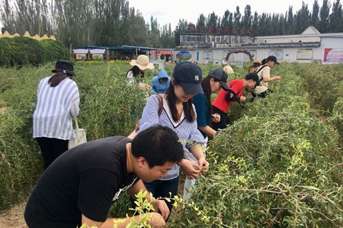 7月9日下午,调研团赴银川红玛瑙商贸有限公司进行调研。该企业位于银川西夏区新小线3.5公里处,占地270亩,是了解宁夏枸杞文化的首选之地。红玛瑙枸杞基地位于宁夏银川市西夏区,是农业生态旅游示范园区、宁夏首家国家AA级体验式枸杞区,也是宁夏农科院枸杞种植基地。其园区内共有六大区域:体验采摘区、枸杞文化长廊、游戏竞技区、品种博览区、葡萄观光长廊以及土特产展厅,提供新鲜枸杞果实的观赏、采摘、品尝。调研团体验了枸杞采摘后,董事长朱军邀调研团进行座谈。他为调研团讲述了企业的特色:“体验式”消费、“混搭式”经营模式以及“闭环式”发展。座谈期间,朱总从其创立枸杞园讲到了枸杞研究;最关键的是还提到了中小微企业与大型央企国企生存状况和发展的对比,希望调研团能够发现目前中小微小企业正处于生存发展困难的阶段,更加需要国家以及政府的帮助扶持。通过对该企业的参观调研,不仅让调研团了解到目前中小微型企业生存发展的困难,还为中小微型企业生存发展提供了新思路:创新式混搭经营,即在踏踏实实做好一件事的基础上不断突破创新,采用多种模式经营,以扩大企业生存发展之路。