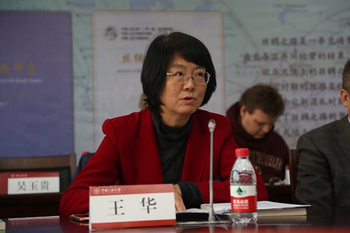 随后,国家新闻出版广电总局管理司王华副巡视员致辞。她认为《丝绸之路研究》的首发不但对深度挖掘和传承“一带一路”精神有重要的意义,而且也是出版界和学术界落实十九大精神的新举措、新作为。她提出三点想法:第一,要集中深入研究“一带一路”的发展规律;第二,将各国共建“一带一路”的措施模式分析总结提炼;第三,促进丝路上的文化交流。