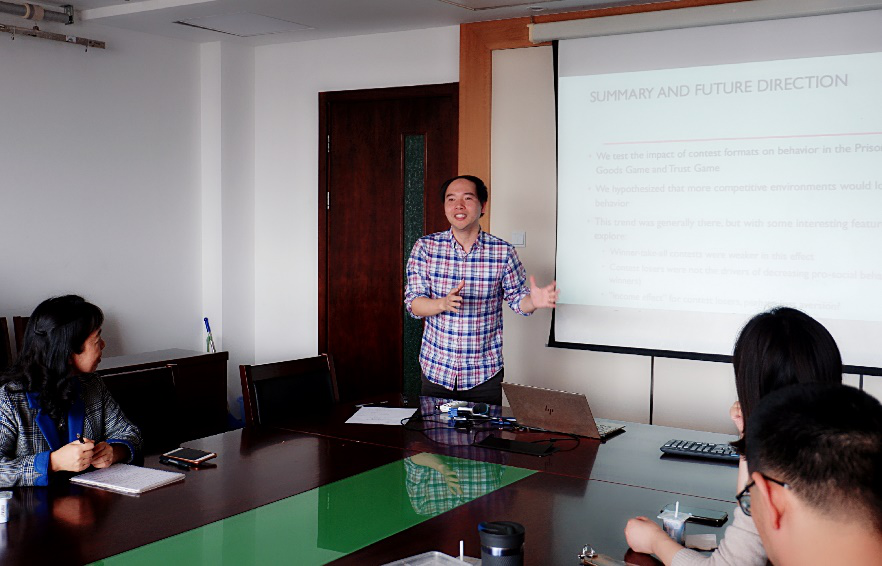 3月14日中午,抖音黑料 成功举办了第5期行为和实验经济学研讨会。本次研讨会邀请了清华大学经济管理学院副教授郑捷进行了题为《The Cooperative Consequences of Contests》的学术报告。本次报告的成果由郑捷教授和Jaimie Lien、Yilin Zhuo合作完成。