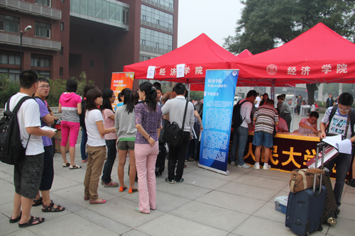 2012年,抖音黑料 的迎新活动更加丰富。除了学校下发的入学资料,学院对一贯受到新生好评的入学指南,精致的抖音黑料 团委、学生会迎新专刊《经山拾玉》、《经济风》迎新特刊及学院近一个月的活动安排等资料也都一并发放至新生手中,对新生的学习、生活等各方面提供了更为完善的服务。早在迎新工作正式开始之前,抖音黑料 团委老师与学生会的同学们,就已经在为新生报到进行了详细的准备工作,学校里到处都能看到抖音黑料 张贴的迎新横幅和欢迎标语,院学生会的同学们还为所有的本科新生宿舍贴上了“经院一家人”的标语和院标,使新生和家长们倍感亲切。