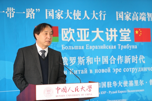 鲁德大使首先对人民大学的邀请表示感谢,并简要介绍了他本人的工作经历和白俄罗斯的国家概况。随后,他就中白两国在政治、经济等领域的合作发表了演讲。