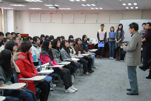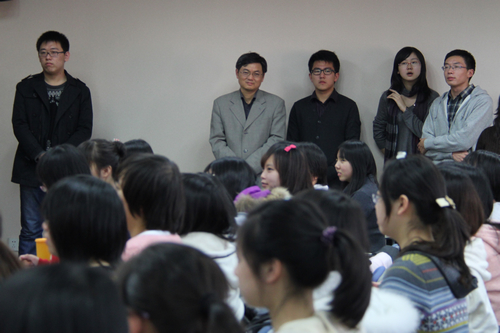 “一二九”合唱排练已进入了最后的冲刺阶段。下午2点30分,“一二九”合唱团队员们正在明主728教室进行排练,这时杨瑞龙院长走入合排现场,同学们掌声雷动,兴奋不已。作为对院长悉心关怀的感谢,同学们首先为院长展示了自己一个多月以来辛苦排练的成果。演唱开始前,一些同学不约而同地清清嗓子、挺直腰板,力图把最佳的状态展现在杨院长面前。悠扬唯美的《香格里拉》,欢快神秘的《茨冈》,中外两首风格迥异的歌曲的独特魅力被同学们热情洋溢的歌声演绎得淋漓尽致。曲声终了,杨瑞龙院长率先鼓掌,对于排练的成果大加称赞。