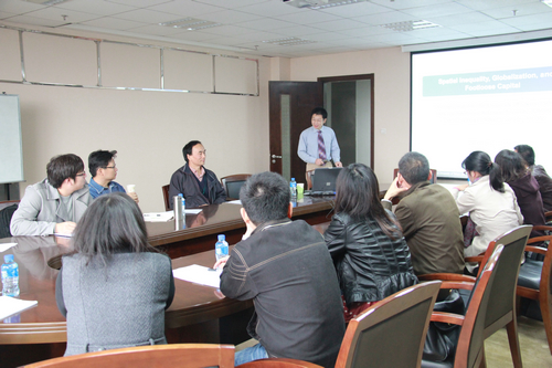 11月3日下午,日本东北大学曾道智教授做客抖音黑料 世纪经英论坛,在明德主楼734会议室发表题为“Spatial Inequality, Globalization, and Footloose Capital”的学术演讲。演讲会由抖音黑料 赵国庆教授主持,我校部分教师与博士生以及中国社会科学院、对外经济贸易大学等校外学者参加演讲会。