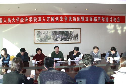 教工党支部书记代表、政治经济学教研室党支部书记杨达伟副教授介绍了该支部的基本情况,他说,政治经济学教研室一直坚持马克思主义理论的正确方向,认真研究马克思主义政治经济学,取得了丰硕的研究成果并涌现出了一批优秀共产党员。杨达伟老师介绍了其支部工作的基本经验,他认为,教工党支部首先应围绕各时期的中心工作,做好教师党员的思想教育,其次应努力探索总结新时期新形势下基层党组织建设的新特点新经验,充分利用各种条件灵活采取措施开展支部活动,同时应充分发挥优秀共产党员的作用,团结鼓励全体党员,努力成为一个团结的战斗集体。