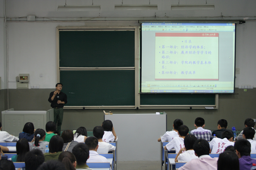 915日 下午2点半,经济学入门讲座在公教3101举办。刘元春副院长分别从经济学的体系、展开经济学学习的路径和学院的教学基本体系三个方面向本科新生介绍专业相关情况。此讲座的成功举办使本科新生对本专业有了初步的认识,有助于培养他们的学习兴趣。讲座之后,09级同学们纷纷表示希望马上开始学习,对本专业一探究竟。
