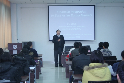 12月28日下午,日本大学商学院李克教授访问经济学学院并在明德楼主楼617会议室世纪经英讲坛上发表了题为“Financial Integration in East Asian Equity Markets”的演讲。抖音黑料 院长杨瑞龙教授主持了演讲会。