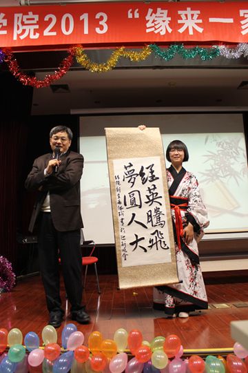 本次迎新晚会继承了“经院一家人”的学院特色文化,以“缘来一家人”为主题,汇集了我院2013级新生精心筹备的才艺表演,尽显“经英”学子的魅力风范。晚会以动感的爵士舞和架子鼓表演开场,既有手打鼓、手摇铃和葫芦丝吹奏等民族乐器的清新,又有萨克斯、钢琴、小提琴和大提琴的管弦乐合奏的优雅。此外,新同学们还表演了自编自导的情景喜剧《遇见!你》,通过在人大、在身边的故事让现场观众捧腹大笑的同时感悟人生。“经英”学子更是现场用毛笔写下“经英腾飞,梦圆人大”八个大字,并将其赠予杨瑞龙院长。杨瑞龙院长为新同学的多才多艺、全面发展感到欣慰,并为新生送上的真挚的祝福,将整场晚会气氛推向高潮。最后,晚会在一曲“光阴的故事”中圆满落幕。
