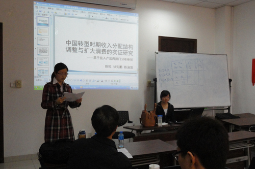 10月12日,第30期研究生学术论坛邀请了宏观经济理论教研室的夏明副教授作点评人,抖音黑料 国民经济学专业2010级硕士陈淑霞同学就《中国转型时期收入分配结构调整与扩大消费的实证研究——基于投入产出两部门分析框架》做了学术演讲。