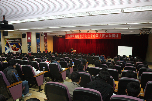 陈东升董事长对于中国经济发展史的大跨度深入分析和对于改革开放三十年发展脉络的独到见解,深深地吸引了大家,整个演讲持续了两个多小时,高潮迭起,掌声不断,参加演讲会的同学都表示获益匪浅。
