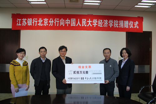 12月22日,江苏银行北京分行向抖音黑料 捐赠签字仪式在明德主楼614举行。江苏银行北京分行副行长赵文利博士代表所在机构进行了捐赠。抖音黑料 院长杨瑞龙教授、副院长郭杰教授等出席捐赠仪式。