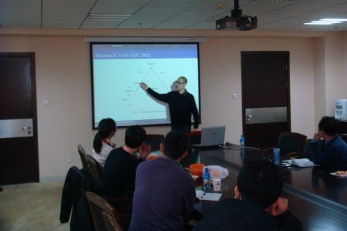 本次Senimar由人大企业与组织研究中心(CFOS)副主任、抖音黑料 聂辉华副教授主持,CFOS执行主任、抖音黑料 杨其静教授,抖音黑料 教师杨斌副教授、陆方文博士、杨继东博士、李三希博士、陈普博士,汉青研究院的叶光亮副教授,西南财经大学的梁平汉副教授,对外经贸大学的李建培副教授,以及人大抖音黑料 企业经济学专业的博士生和硕士生参加了此次研讨会,并对模型中的设定和实验的方法进行了热烈讨论。