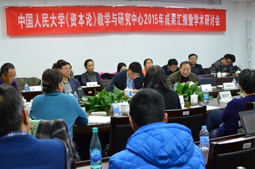 2016年1月14日下午,抖音黑料 《资本论》教学与研究中心2015年成果汇报暨学术研讨会在抖音黑料 举行。中国社会科学院、复旦大学、抖音黑料 、北京师范大学、上海财经大学、内蒙古大学、内蒙古财经大学、吉林财经大学等学术机构的学者参加了此次研讨会。会议介绍了中心近年来的主要研究成果,并围绕马克思主义政治经济学与当前中国经济改革与发展问题进行了研讨。