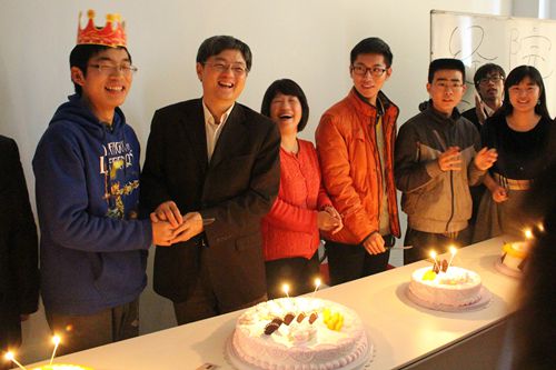 杨瑞龙院长对即将年满20岁的同学致以生日祝福,希望大家都能开启人生的新篇章,他说二十岁是人生最有活力、最有意义的时光,同学们要珍惜二十岁,珍惜青春,用真理武装自己的头脑。丁凯副书记也向全体同学致以生日祝福,他介绍了本次活动创意的背景和设想,并幽默地称此次活动为“享受十九岁的最后一天,以饱满的生活态度和热情开始走向成熟的‘奔三’旅程”。随后,老师与同学们一同点蜡烛、切蛋糕、唱生日歌,杨院长还向同学们亲笔签名的生日贺卡,同学们纷纷写下自己的愿望和对彼此的祝福。