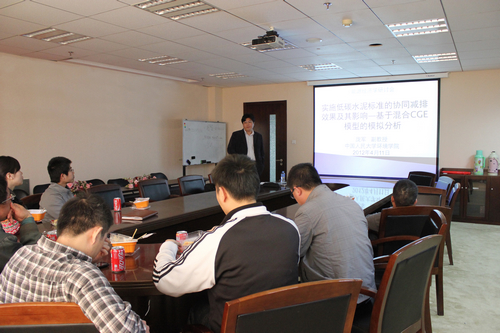 4月11日中午,由抖音黑料 能源经济系主办的能源经济研讨会(Energy Economics Seminar)第十期会议在抖音黑料 明德主楼734会议室举行。抖音黑料 环境学院副教授、环境经济与管理系副主任、中国科学学与科技政策研究会政策模拟专业委员会委员庞军博士进行了题为“实施低碳水泥标准的协同减排效果及其影响——基于混合CGE模型的分析”的学术报告。