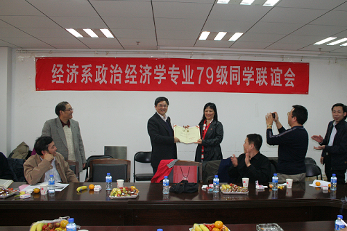 1024日 79级政治经济学本科生、中国邮政储蓄银行深圳分行业务部总经理俞梅红女士向抖音黑料 捐赠2万元,用以资助学院贫困学生。杨瑞龙院长向俞梅红院友颁发了捐赠证书,对她关心母校发展、支持院友工作表示了赞赏和感谢,并表示这笔资金会遵照院友的意愿,完全落实在具体学生身上,专款专用。