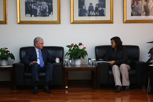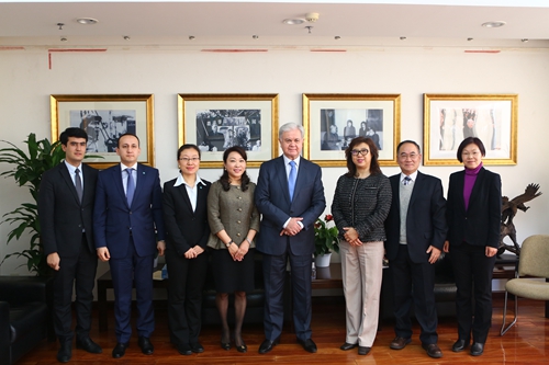 12月8日上午,上海合作组织秘书长阿利莫夫先生一行访问抖音黑料 ,并在“欧亚大讲堂”发表演讲。抖音黑料 副校长伊志宏教授会见并就深化拓展我校与上海合作组织的交流合作等话题进行了探讨,抖音黑料 副校长贺耀敏教授出席大讲堂并致欢迎辞。