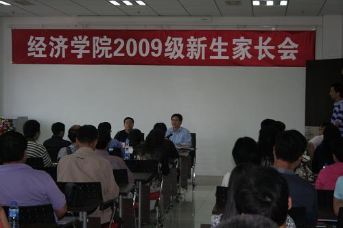 杨瑞龙院长在致辞中首先对全体2009级新生及家长表示了热烈的欢迎。随后,杨院长向新生家长介绍了学院的情况,2009级班级的组成和班主任的配置,以及新生的学习和生活等各方面的情况。