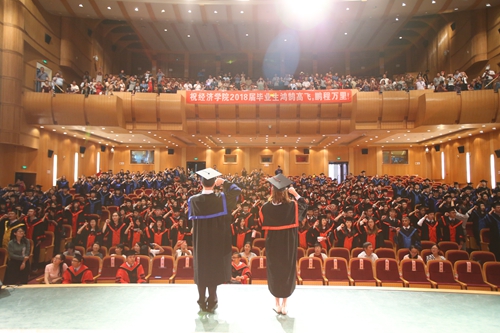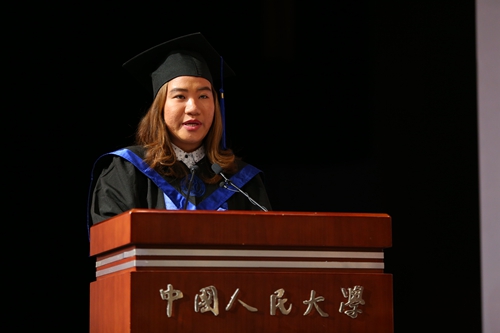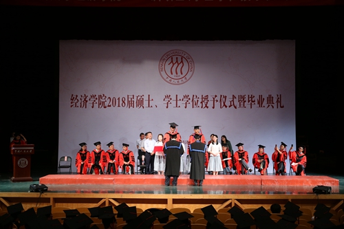 随后,2018届世界经济学专业毕业生冯朔和泰国留学生、援外硕士毕业生林莹作为毕业生代表发言。他们都真诚表达了对母校和经院的深情、对经院老师的感恩、对学生生活的怀念以及对未来人生的憧憬。