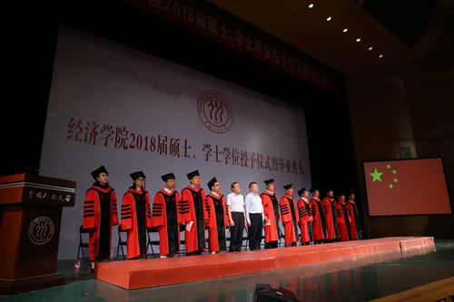 上午9时,抖音黑料 2018届硕士、学士学位授予仪式暨毕业典礼在明德堂隆重举行。仪式在雄壮嘹亮的国歌声中开幕。抖音黑料 荣誉一级教授胡钧,抖音黑料 一级教授吴易风、杨瑞龙,抖音黑料 副校长贺耀敏教授,抖音黑料 副校长兼抖音黑料 院长刘元春教授,校友代表、招商银行监事会监事长刘元教授,抖音黑料 党委书记兼常务副院长关雪凌教授,抖音黑料 方福前教授、雷达教授、陈享光教授、刘瑞教授、王晋斌教授、郑新业教授、陈彦斌教授和方芳教授等出席仪式,并为抖音黑料 硕士、学士学位获得者授予学位。学校各机关部处、兄弟院系代表、抖音黑料 教师代表、毕业生家长代表等观礼。抖音黑料 2018届全体硕士、学士学位获得者参加仪式和典礼。学位授予仪式暨毕业典礼由关雪凌书记主持。