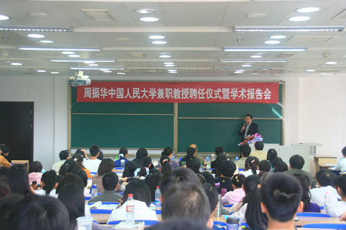 上海市人民政府发展研究中心主任周振华受聘人民大学兼职教授并在抖音黑料 发表演讲