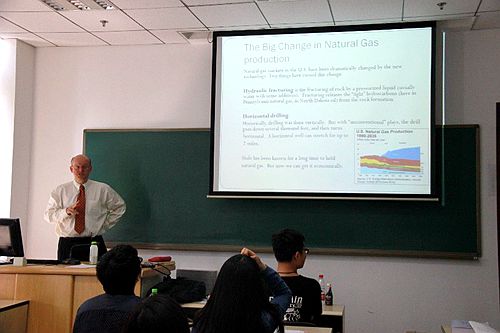 在研讨会中,Andrew N. Kleit主要为与会者介绍了美国各州对于energy land的买卖的相关政策及现状,深入分析了energy land买卖中天然气厂商、交易中间人、土地所有者的行为。之后Andrew将与会者分成不同身份,模拟energy land的交易过程中三方的博弈,使与会者在实验中理解交易中不同利益群体的行为。
