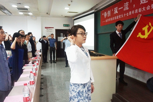 2018年6月6日下午,抖音黑料 党委 “争创‘双一流’,建功‘新时代’”庆祝建党九十七周年表彰大会暨新发展党员入党宣誓仪式在明德法学楼0201教室成功举办。