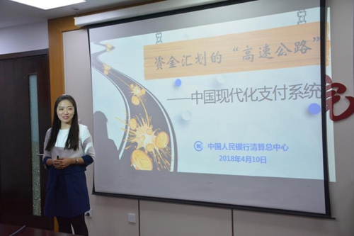 清算总中心的青年业务骨干以“资金汇划的高速公路”为题,深入浅出地为学生们介绍了央行支付清算系统这条金融高速公路的建设、运行、维护和管理的日常机制,带领大家回顾了我国支付清算系统发展的历史,通过轻松诙谐的宣传片和贴近生活的事例,为大家介绍了中国现代化支付系统在我国经济社会活动中的基础性地位和重要作用,与学生们所学专业相结合,展望了未来央行支付清算系统的发展路径。