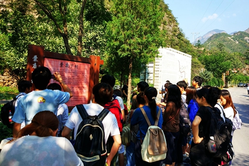 9月15日,中日师生来到门头沟爨底下村进行调研。爨底下村依山而立,沿河拓展,以其自然风貌和特色的农村建筑风格、民俗文化闻名北京,吸引了大量来自周边地区的参观者。因此,该村目前的主要产业为旅游业,并由此发展了农家乐和休闲旅游。爨底下村正好契合了本次交流的主题“农村经济发展”,并且符合日方的调研方向“休闲旅游”,因此将该地作为本次调研的调研地。在爨底下村,中日双方参观了村庄的自然人文风貌,了解了村庄的历史和风土人情,体验了爨底下村的农家乐,并且将中国的休闲农业与日本的休闲农业进行对比,总结了双方农业存在的问题以及可以相互借鉴的地方。