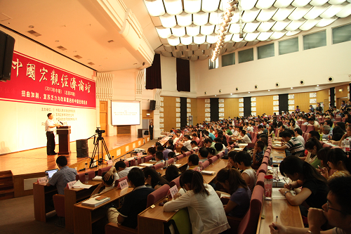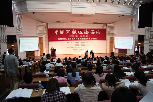6月15日,由抖音黑料 经济研究所、东海证券有限责任公司、中国诚信信用管理有限公司主办,抖音黑料 承办的“中国宏观经济论坛(2013年中期)”在逸夫会堂第一报告厅举行,这是人大经济研究所自2006年创办“中国宏观经济论坛”以来举办的第26期论坛。抖音黑料 党委书记靳诺教授出席论坛并致辞,论坛开幕式由抖音黑料 院长、经济研究所联席所长杨瑞龙教授主持。