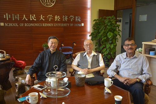 论坛开始前,Kajal Lahiri教授在明主620A会议室与前抖音黑料 校长黄达教授、抖音黑料 黄卫平教授、雷达教授、郑新业教授进行了简短座谈交流。Kajal Lahiri教授回忆起1989年在中国福特班任教时的情况,他称,当年的学生都十分优秀,有几位现在在美国学术界都有相当的影响。再次回到中国,北京发生了巨大的变化,教授直言在历史上他也无法找到像中国这样如此迅速的发展。随后,Lahiri教授与在座的教授交流了当今学术抖音黑料 ,尤其是经济学研究方面的问题,气氛十分融洽。