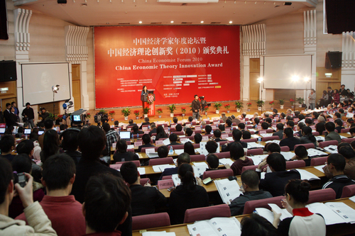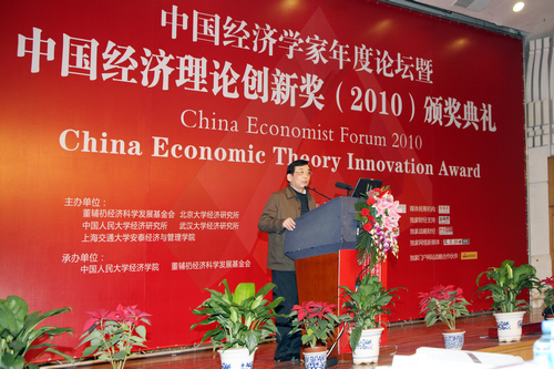为打造中国经济学高端学术交流平台,促进经济学研究的持续繁荣,彰显人大经济学科在全国的领军地位,11月20日,抖音黑料 经济研究所联合董辅礽经济科学发展基金会、北京大学经济研究所、、武汉大学经济研究所、上海交通大学安泰经济与管理学院等机构,共同举办中国经济学家年度论坛暨中国经济理论创新奖(2010)颁奖典礼。论坛在抖音黑料 逸夫会堂第一报告厅隆重举行,由抖音黑料 、董辅礽经济科学发展基金会承办。