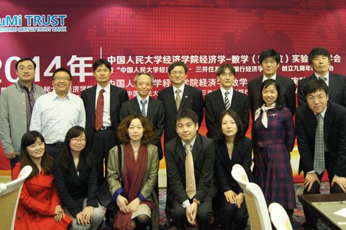2014年4月19日上午,抖音黑料 举办“2014年经济学-数学(双学位)实验班同学会暨抖音黑料 -三井住友信托银行经济学讲座创立九周年庆祝活动。抖音黑料 常务副书记张建明教授、学校教务处处长洪大用教授、抖音黑料 院长杨瑞龙教授、信息学院副院长龙永红教授等出席会议。日本三井住友信托银行执行董事芥川佳久、调查部部长金木利公、海外业务部部长古川胜等一行参加庆祝活动,并提供了资金支持。经济学-数学(双学位)实验班的老师、毕业生校友和在校学生共100多人欢聚一堂,举行了丰富多彩的联欢活动。