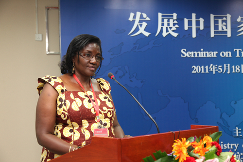 研修班官员、乌干达东非事务管理部生产与社会服务局局长罗娜?那达拉女士首先对作为研修班主办方的中国商务部和承办方的抖音黑料 表示了衷心的感谢,并对受到的热情接待非常感动。那达拉女士说,人大的教授讲授了我们独特的经验和方法,让我们了解中国取得如今成就所经历的和正在经历的过程,使我们分享了中国积累的财富和知识,我们将带着知识和技能回到我们的国家。中国的经验、中国人民对于祖国的热爱和奉献,给了我们很大的希望,这更加坚定了我们在非洲克服贫困问题和发展挑战的信心。