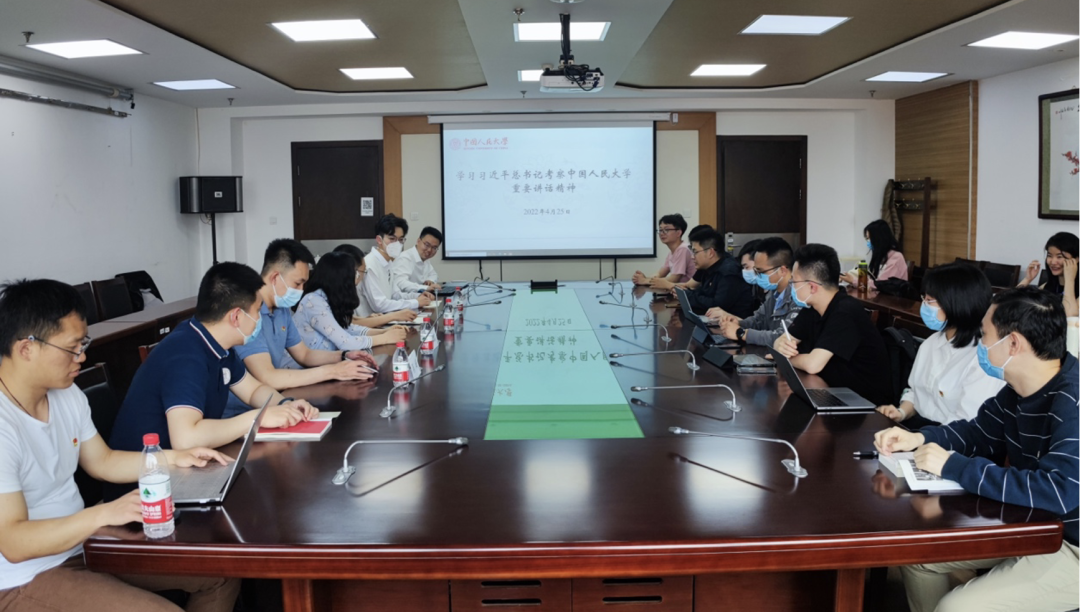 4月25日下午,政治经济学博士第一党支部、第二党支部第一时间与参加座谈会代表特木钦、陈诚、王诗龙在明主729集体学习习近平总书记考察人民大学重要讲话精神,学院党委副书记李佩洁出席。